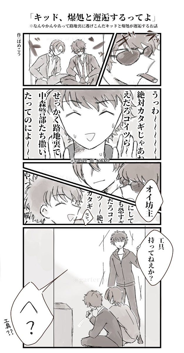 #怪盗キッド誕生祭2022 #怪盗キッド生誕祭2022 #黒羽快斗誕生祭2022 【怪盗キッド、爆処と邂逅するってよ】 路地裏でキッド様と爆処が遭遇しちゃうお話です🙌🙌 (キッド様おめでと~~~🎉🎊)
