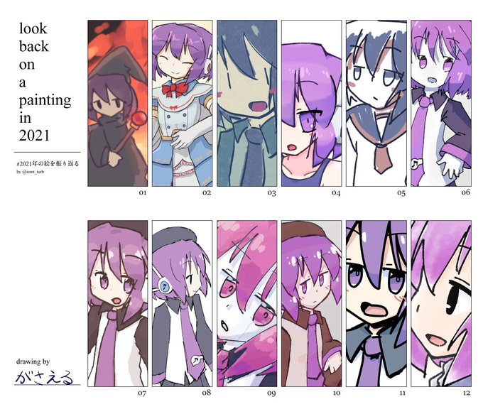 3 22 #2021年の絵を振り返る 思ってたよりいっぱい描いた1年だった。相変わらずデフォ子だらけ 21/12/28 01:43