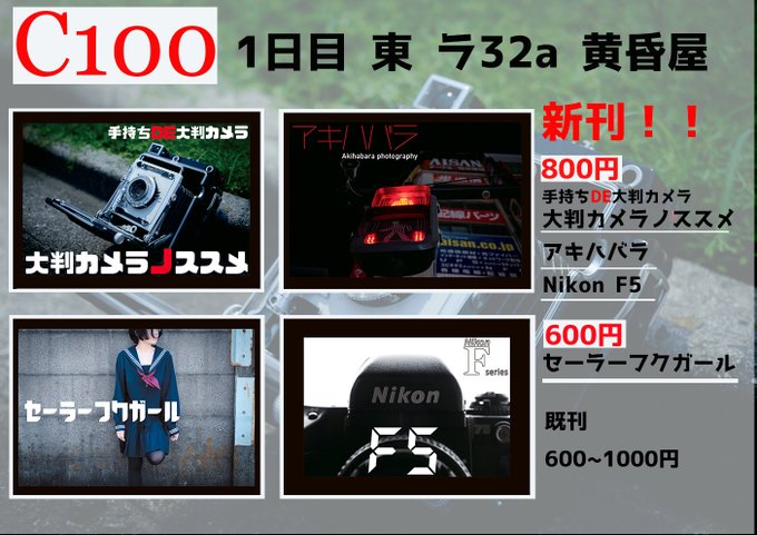 【C100告知】 写真系サークル黄昏屋です。 カメラやセーラー服の写真はお好きですか? お品書き出来たのでツイート #C100新刊 #C100お品書き twitter.com/gasdf155/statu…