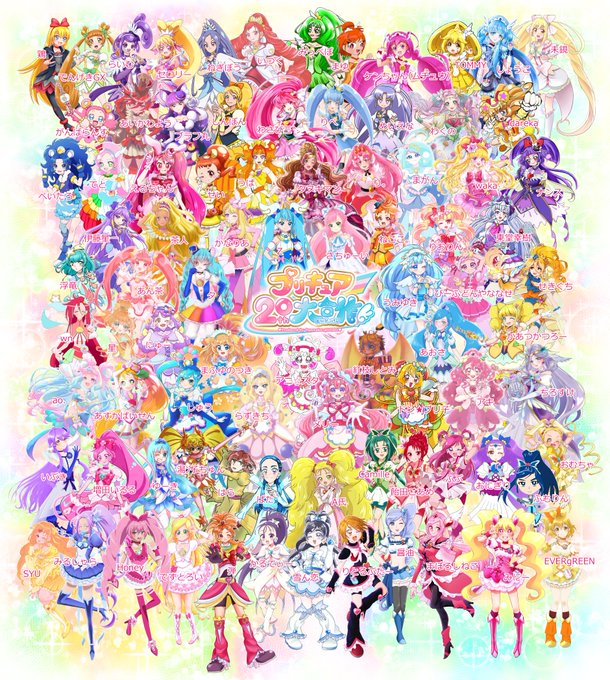 当企画はプリキュアシリーズに感謝の気持ちを込めた”非公式”の合作企画になります。 こちらは参加者の名前入りの合作イラストです。 以下ツリーでアカウント名(ユーザーID)を紹介していきます。