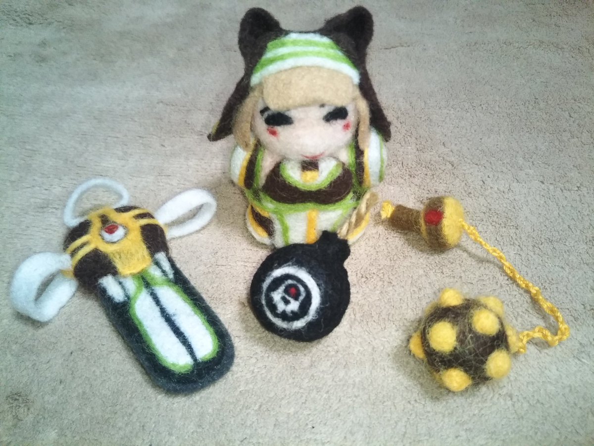 #羊毛フェルト #ボンガ手芸部 っという事で、フェルトンド専用ボムを作ってみました٩(๑òωó๑)۶ ボムにはネクロメーカーにも刻まれているドクロ💀を配しました(≧∇≦)b フェルトンド「愛の炎でアナタをドッカン♥(どかーん!)」
