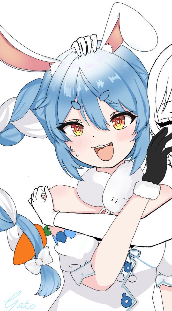 前に友達とホロライブのイラスト合作した~‼️ 隣の船長(友達作)は色々あり色塗りが出来なくなってしまったから、ぺこーらの方だけ切り取って上げます~( ᐛ👐) #イラスト #ホロライブ #ぺこらーと