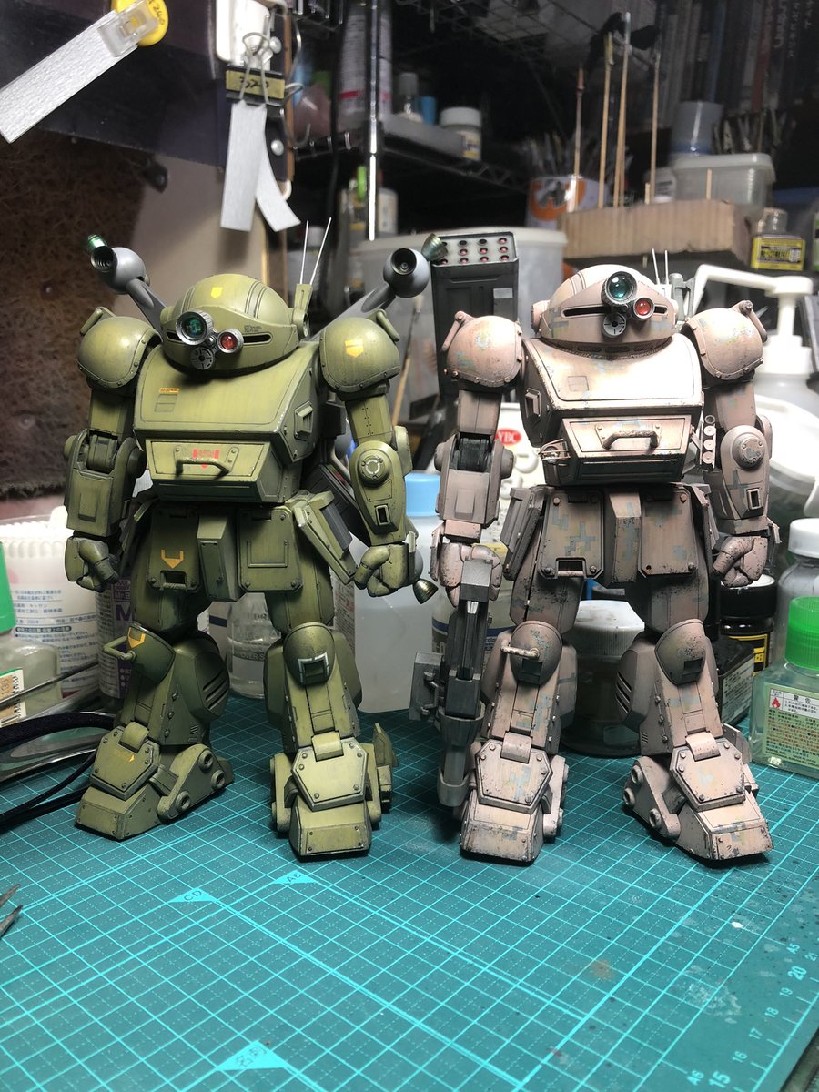 ピンクのタコはスタイル弄らずに素組みなので、パッと見の違いが分かると思います… これも持って行きますので対比が分かるかと|ω`) #装甲騎兵祭
