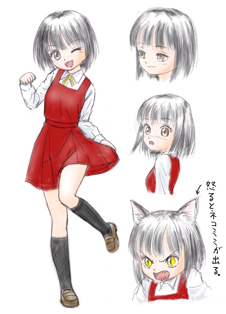 落書きみっつ セーラー服のダボダボ感って難しいですね #ねこ娘 #OL #セーラー服