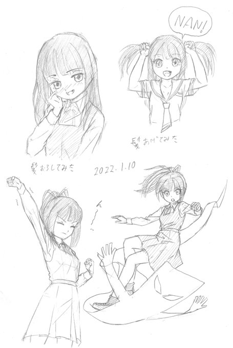 4 14 落書きみっつ セーラー服のダボダボ感って難しいですね #ねこ娘 #OL #セーラー服 22/01/15 19:52
