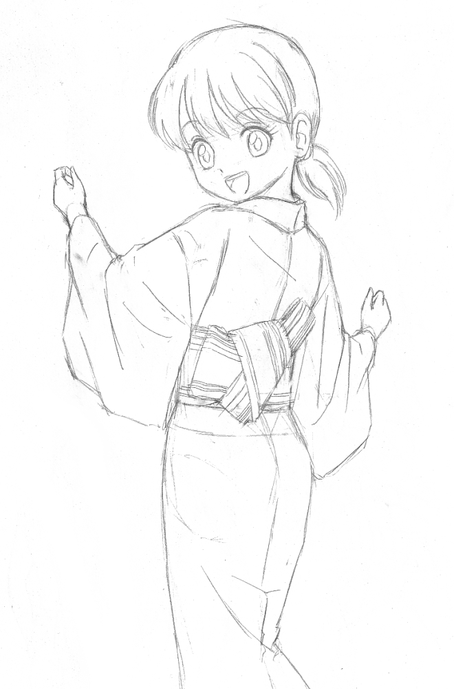 落書き 着物の帯結びは「回の口」といいます あまり若い子はしないかな?羽織の下にすると楽な結び方です やはり写真から模写すると勉強になりますね