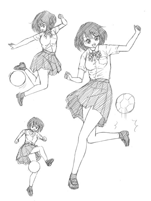 1 4 本日の落書き フリースタイルフットボールする空手子ちゃん 髪の毛の斜線とか、何気に難しかったりします 23/05/19 19:39