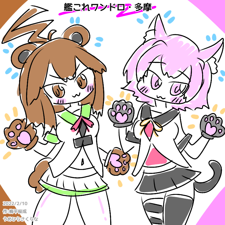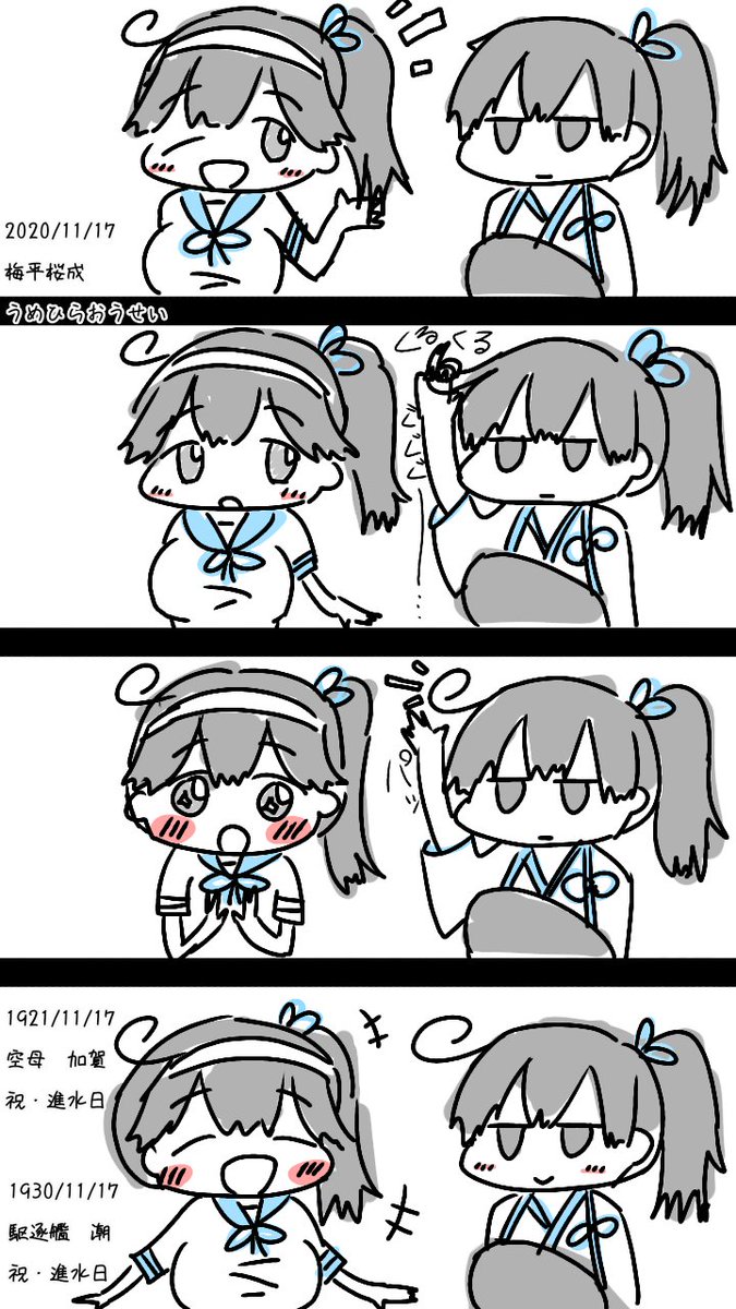 おそろい!そろえた! 自分も艦これ始めた日が同じなのでね、この二人は特に気に入ってます(≧∇≦) #艦これ版深夜の真剣お絵描き60分一本勝負 #艦これ版真剣お絵描き60分一本勝負_20201117 #潮進水日 #加賀進水日