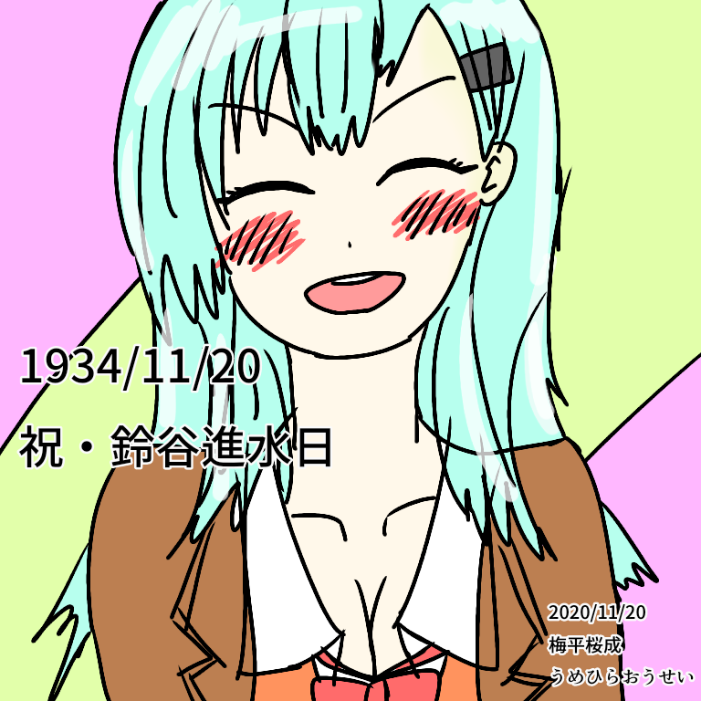 提督!進水日だよー!うーんと褒めてね! あと、鈴谷にプレゼント、ちょーだい? #鈴谷進水日 #艦これ版深夜の真剣お絵描き60分一本勝負 #艦これ版真剣お絵描き60分一本勝負_20201120