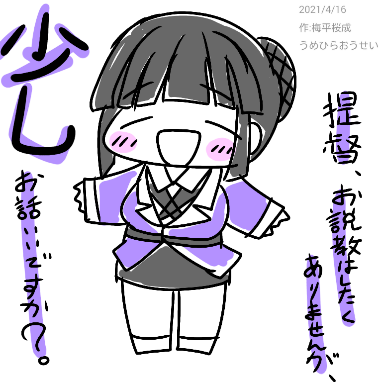 表情が読めないから、いまいち何を考えているのかわからないけど、 最近アホ毛は正直らしいことがわかった #艦これ版深夜の真剣お絵描き60分一本勝負 #艦これ版真剣お絵描き60分一本勝負_20210418 #浜波進水日