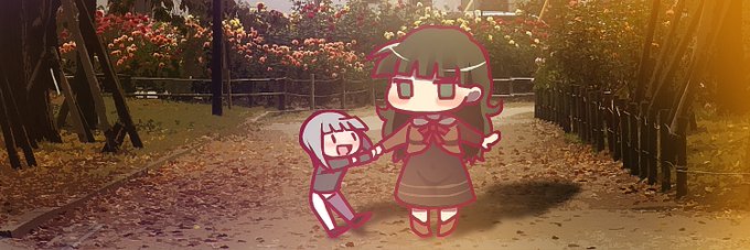 おはよーごぜーます。ヘッダー画像を秋仕様の酸ノ宮&さきさん🧸 近くの公園でお散歩だよ