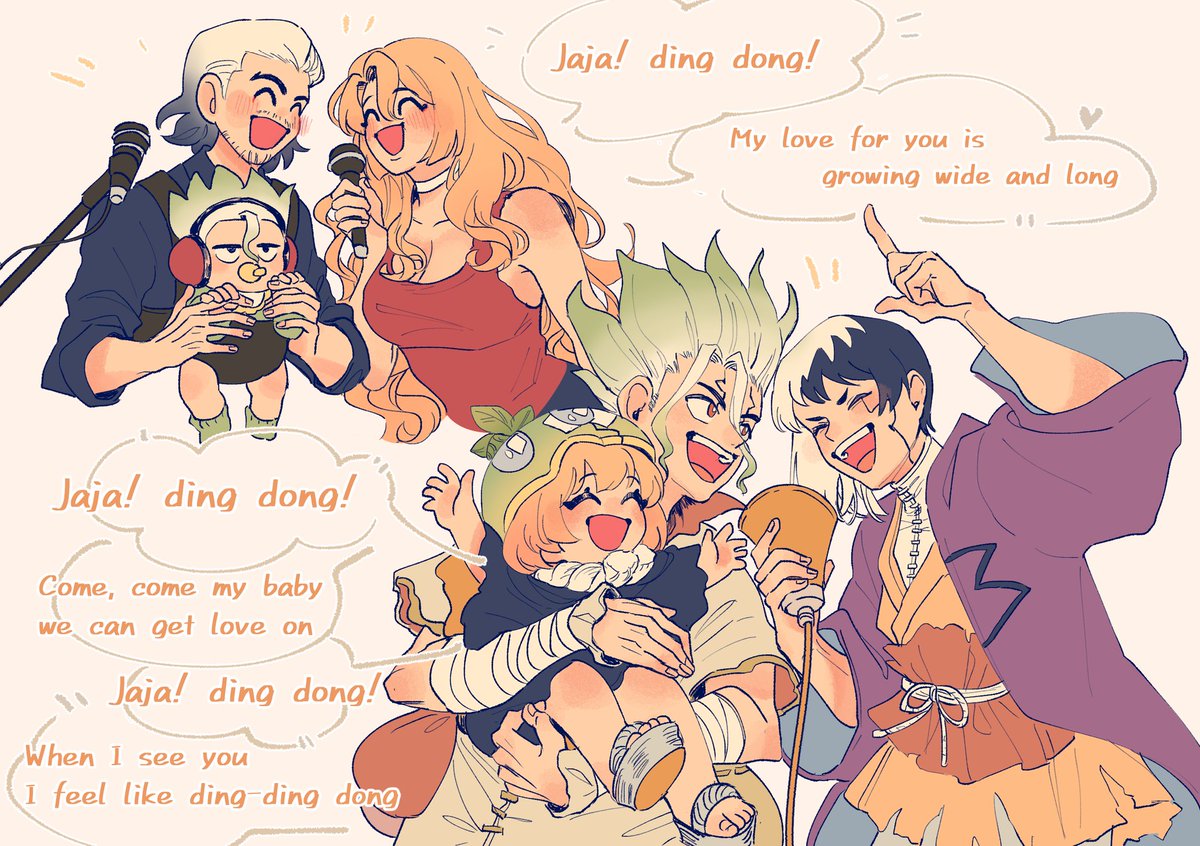 我真的好喜歡呀呀叮咚救命,大家可以去聽看看 youtu.be/PlBUH8zMZng 百夜跟莉莉安加上千空寶寶一起唱歌,彷彿重現電影 兩對我都想畫所以都畫了,好開心🔥