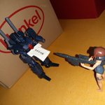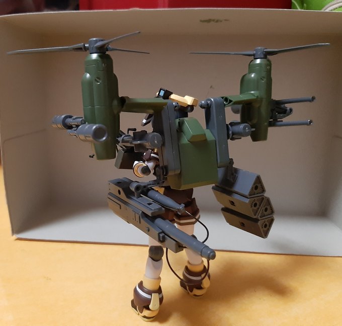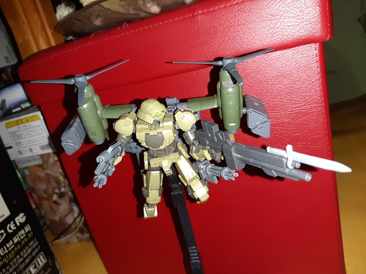 コトブキヤのプラモデルである「コンバットさんRookie」とバンダイのプラモデルである「ハロプラ·モビルハロ」のコラボです。コクピットが狭いからブーツを外さないと搭乗できません。 #ガンプラ #コトブキヤ #一撃殺虫ホイホイさん