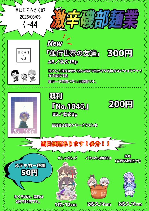 17 32 #にじそうさく07 く-44 激辛磯部麺業 ゲーミング=海苔のお品書きです! 23/05/01 16:25