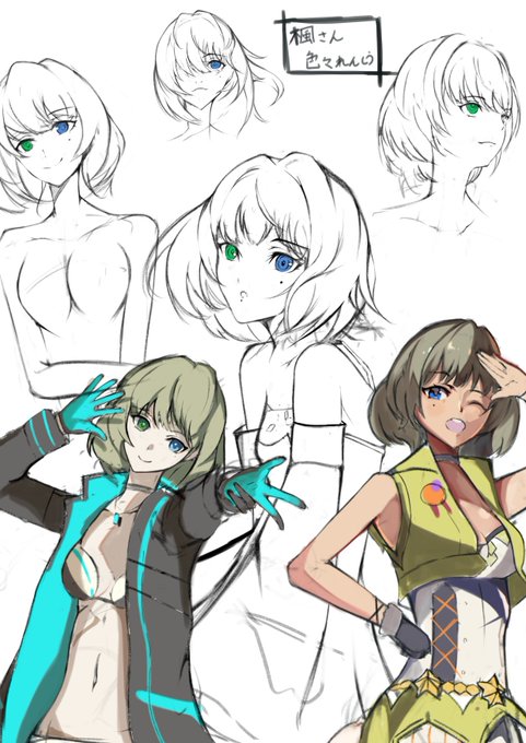 楓さんラフ色々練習がてら描きました。お納めください 顔が良すぎて難しすぎる~~~。。。