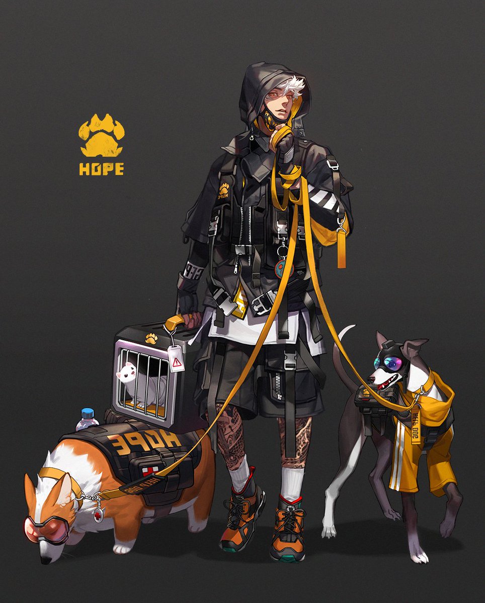 테크웨어 합작에 주최로 참여했습니다! 컨셉은 동물구조대에요(사심가득) 테크웨어 장르는 처음 그려봐서 헤맸는데 멍멍이와 함께해서 즐거웠네요🐶 #테크웨어합작 ▷gebee24.wixsite.com/techwear