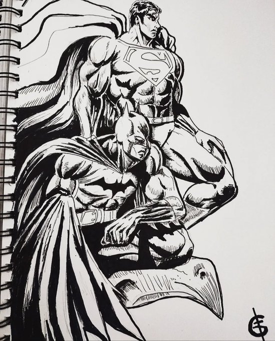The world's finest putting some respect on the ogs . . . . #drawing #sketch #art #anime #sketch #traditionalart #wip #artwork #inktober2022 #comicbooks #comicart #superman #batman #dcmultiverse #dccomics