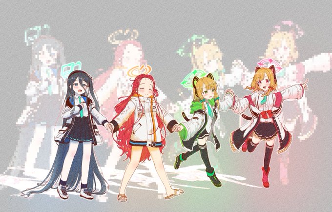 🎮ゲーム開発部のアリスちゃん、ユズちゃん、ミドリちゃん、モモイちゃんを描きました!! #ブルーアーカイブ #ブルアカ