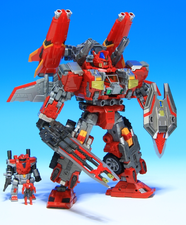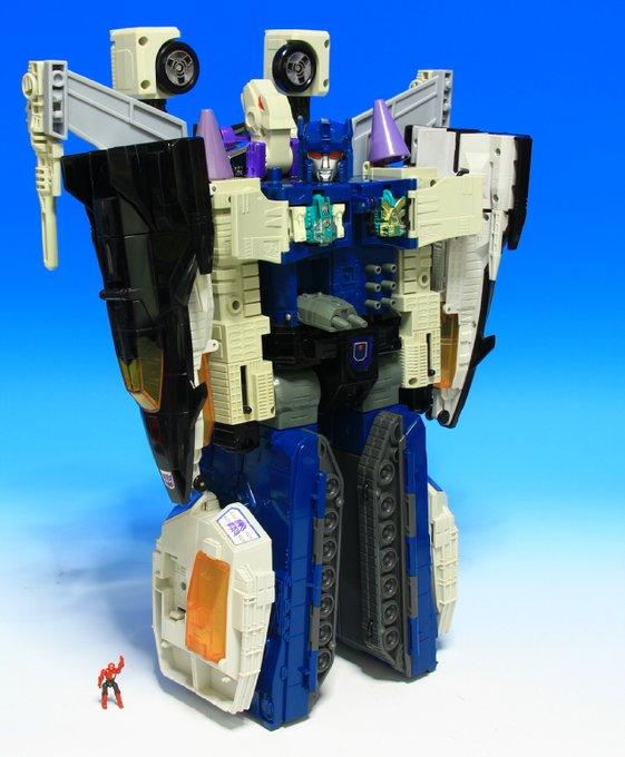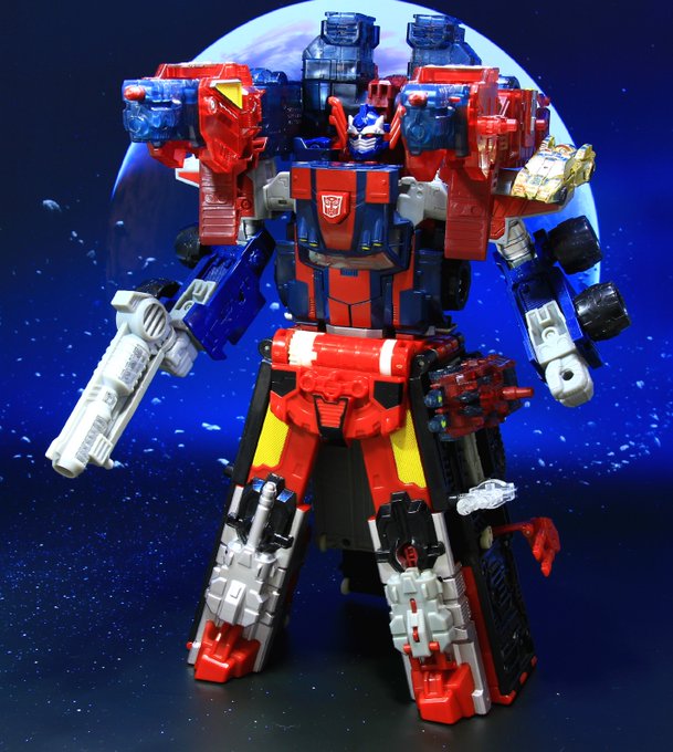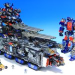 #トランスフォーマー マイクロン伝説 マグナコンボイ DXセット。コンテナと合体した状態がスーパーモードなのでスーパーモードのスーパーモードとなってしまう為か最終決戦仕様(ファイナルバトルモード)となっている。スペシャルカラーのストリートアクションマイクロン付き