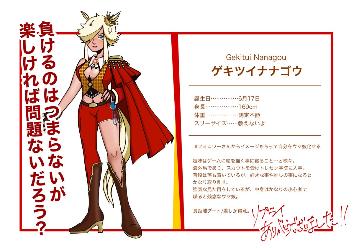 たくさんリプありがとうございました🫰🫰🫰💕💕💕 #フォロワーさんからイメージもらって自分をウマ娘化する