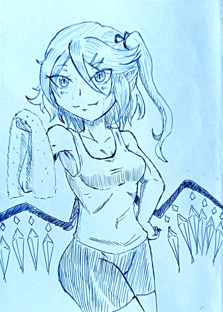 0 1 #シンフォギア #アナログ絵 今日のボールペン落書きはポニテガリィちゃん(ㆁωㆁ) 23/04/19 18:30