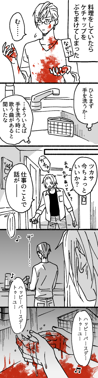 手を洗う時に歌う曲があると聞いたことがあるようなないような曖昧な記憶で実践してみた結果サイコパス殺人鬼のようになる島司。
