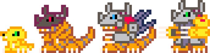 Digivolution - pixel art version #ドット #ドット絵 #pixelart #デジモンアドベンチャー #digimon #digivolution #CommissionsOpen pixiv.net/artworks/81928…