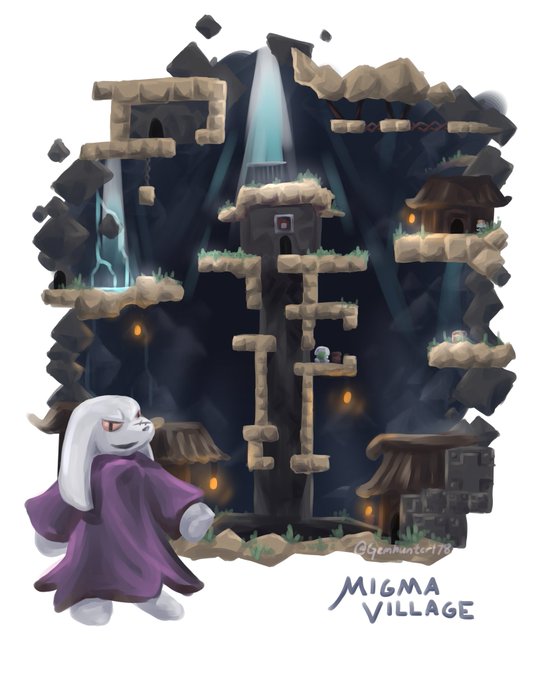 Happy #fanartfriday! Today's is the third poster of my #CaveStory location series, Migma Village! #fanart #cavestoryfanart #digitalart Maybe I'll do the reservoir next?