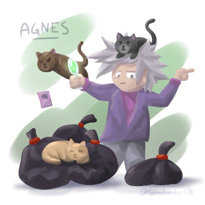 #fanartfriday with an idea I had right after I finished the cat duos from #kindergarten2 - Agnes with all the cats! #fanart #digitalart #character