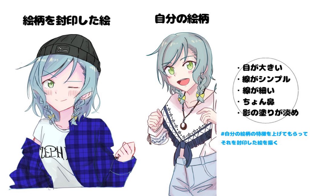 #自分の絵柄の特徴を上げてもらってそれを封印した絵を描く