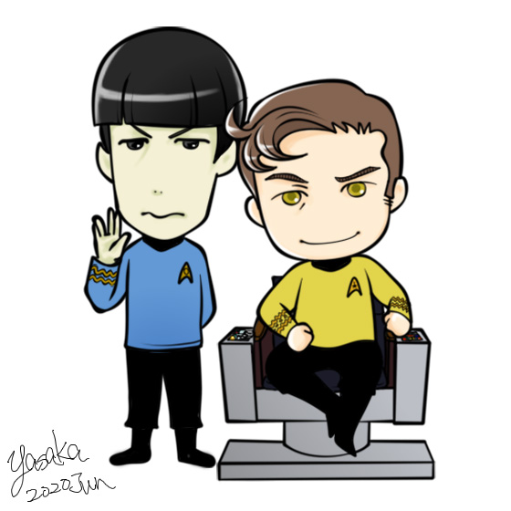 #同じ人が描いたとは思えない絵を貼る 同じ人が描いた同じ人(演者)のはずなんだけど好き放題やってるから最近よくわからなくなってきた… あと何故かよく誤解されるんですが、私、キャプテン・カーク大好きです。本当に。信じて…