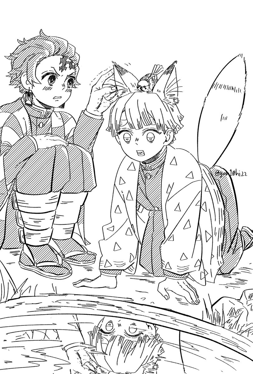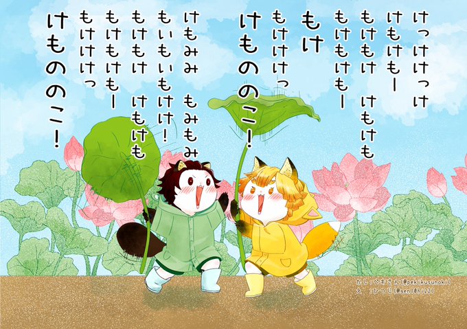 ペキさんのこのツイがツボりすぎて描かせていただきました!(掲載許可済) ハスのはっぱ振り回しながらひらがなでちからいっぱい歌ってるぽんこんちゃんかわいすぎる…!! ペキさん快く許可いただきありがとうございました🙇♀️ twitter.com/pekikusunoki/s…