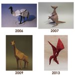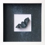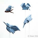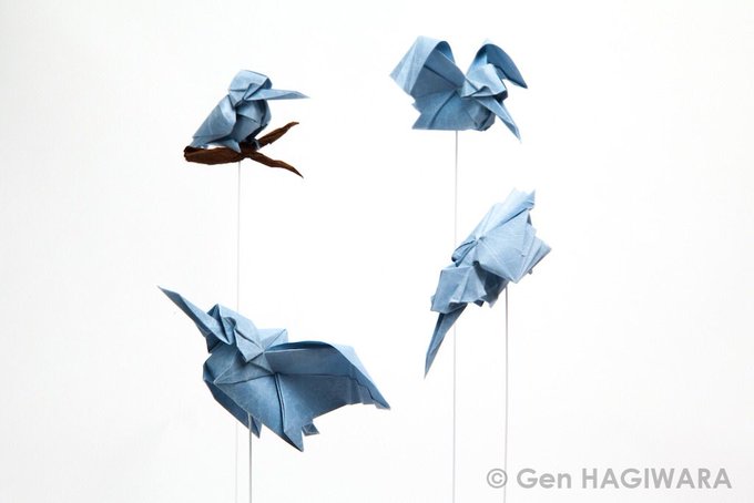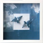 #みんなのSNSなんでも展示会2022 普段は普通に折り紙をやっていますが、たまにこういったものも作ります。 自分で撮った写真を切り抜き、その切り抜いた部分を使って折り紙を折り、一緒に額装した作品です。 それぞれタイトルは「Fold the sky」「Night wing」「Camouflage #1」「Camouflage #2」