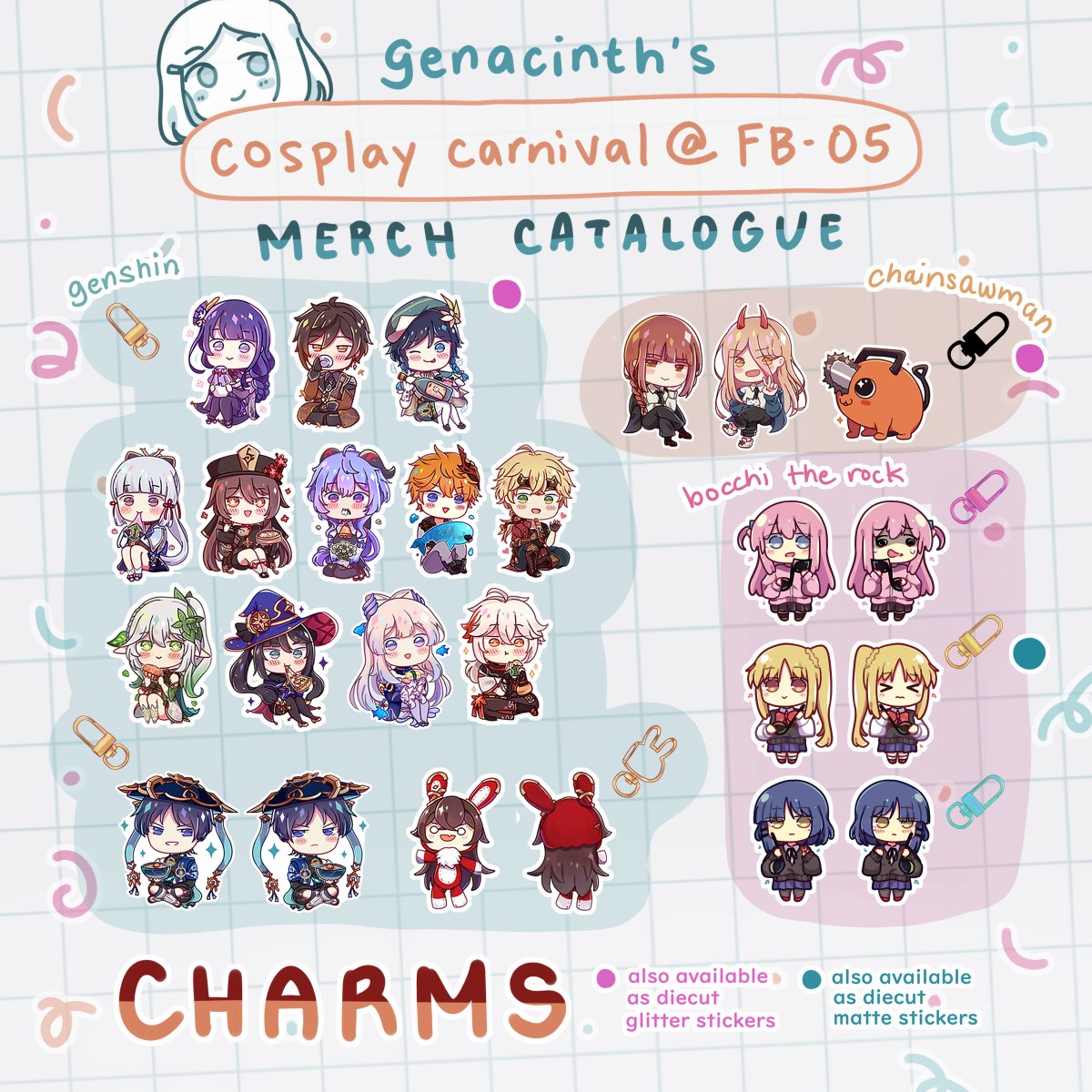 hello!! i'll be at cosplay carnival this april 1-2 at SMX convention center! ☺️🫶will be selling my merch from series like genshin, bocchi the rock, csm, milgram, love live, and more!!👀 please drop by our booth at table FB-05! 🧡 more deets in the reply! #CosplayCarnival2023