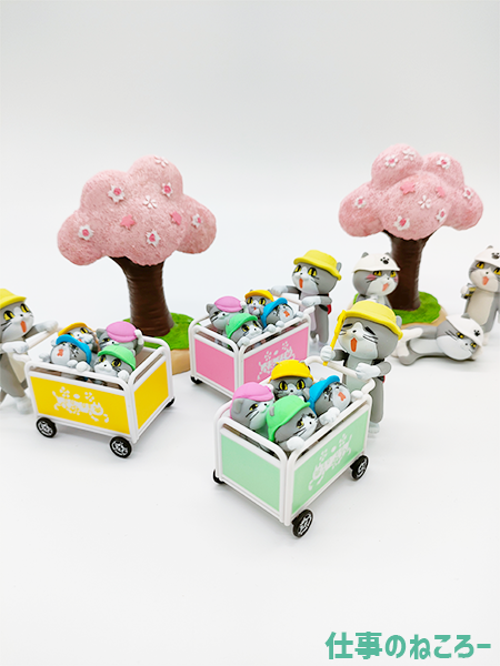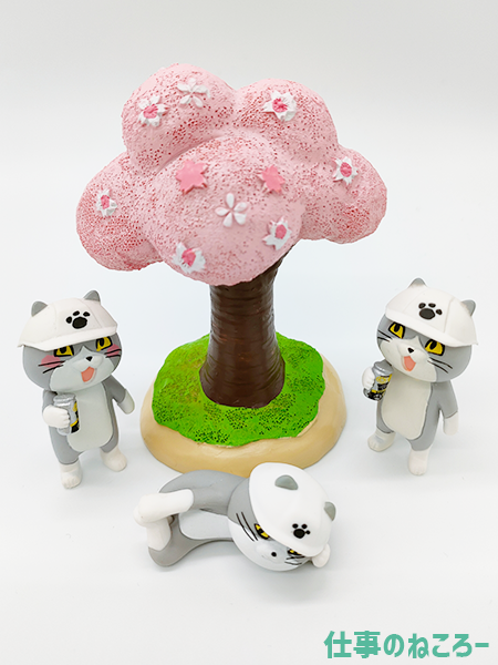 桜のオブジェが仕事猫のガチャにいい感じでした😄 100円ショップで売ってたけど、 300円だったからクオリティも高い気がする! #仕事猫 #トイズキャビン #オモ写 #黒猫キャンペーン5