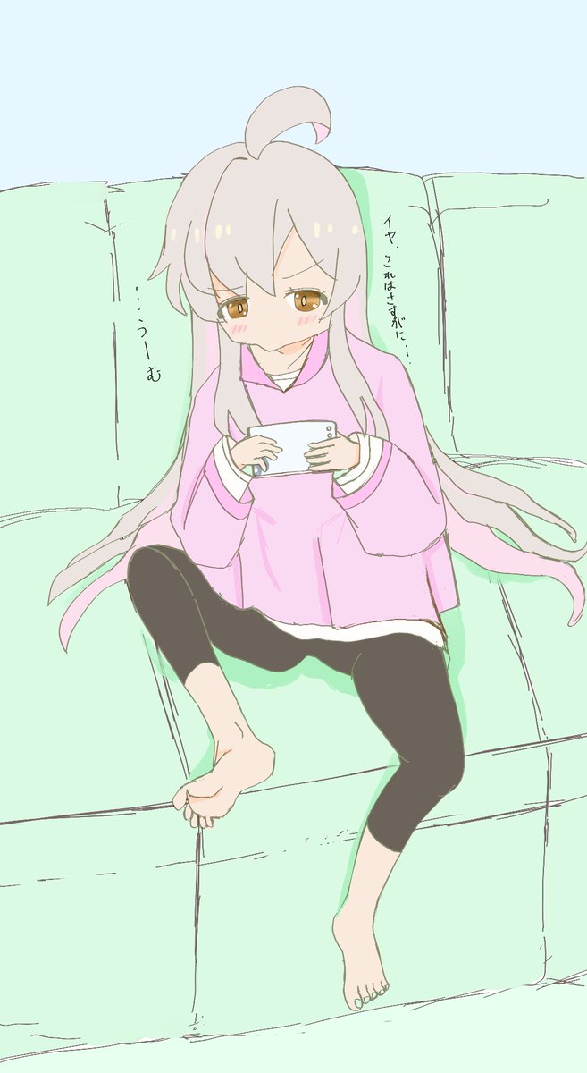 リビングでスマホとにらめっこしながらなにやら悩んでるまひろちゃん #おにまい #おにまいお絵描き #おにまい落書き