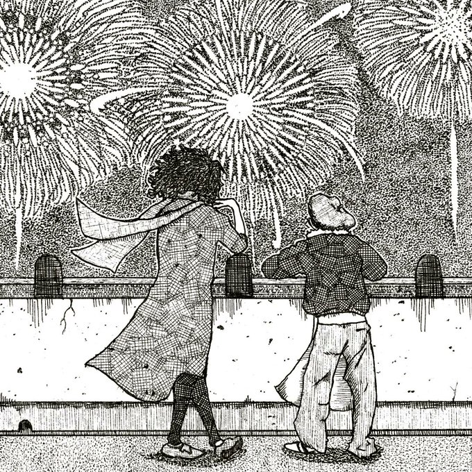 短篇集「クリスマス・プレゼント」 V. journey note.com/gencos_baecker… #note #小説 #創作 #絵 #イラスト #挿絵 #アナログ絵 #線画 #ペン画 #花火 絵:9時間10分