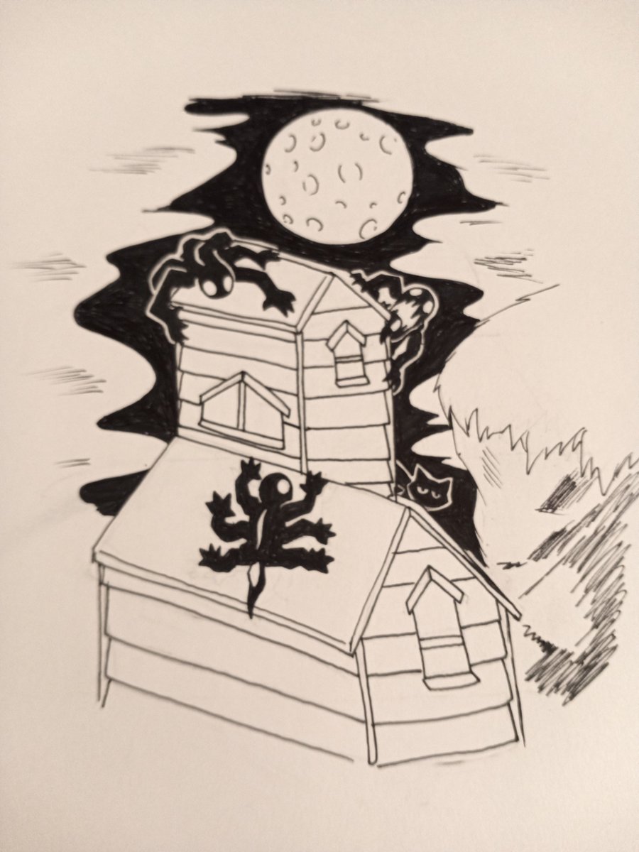 #Inktober2021 #inktober entries for the last three days of week two, "STUCK" "ROOF" and "TICK". #traditionalart