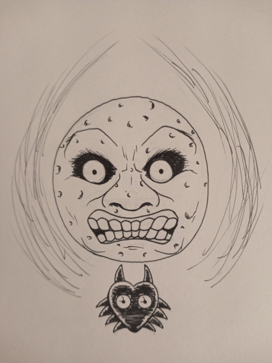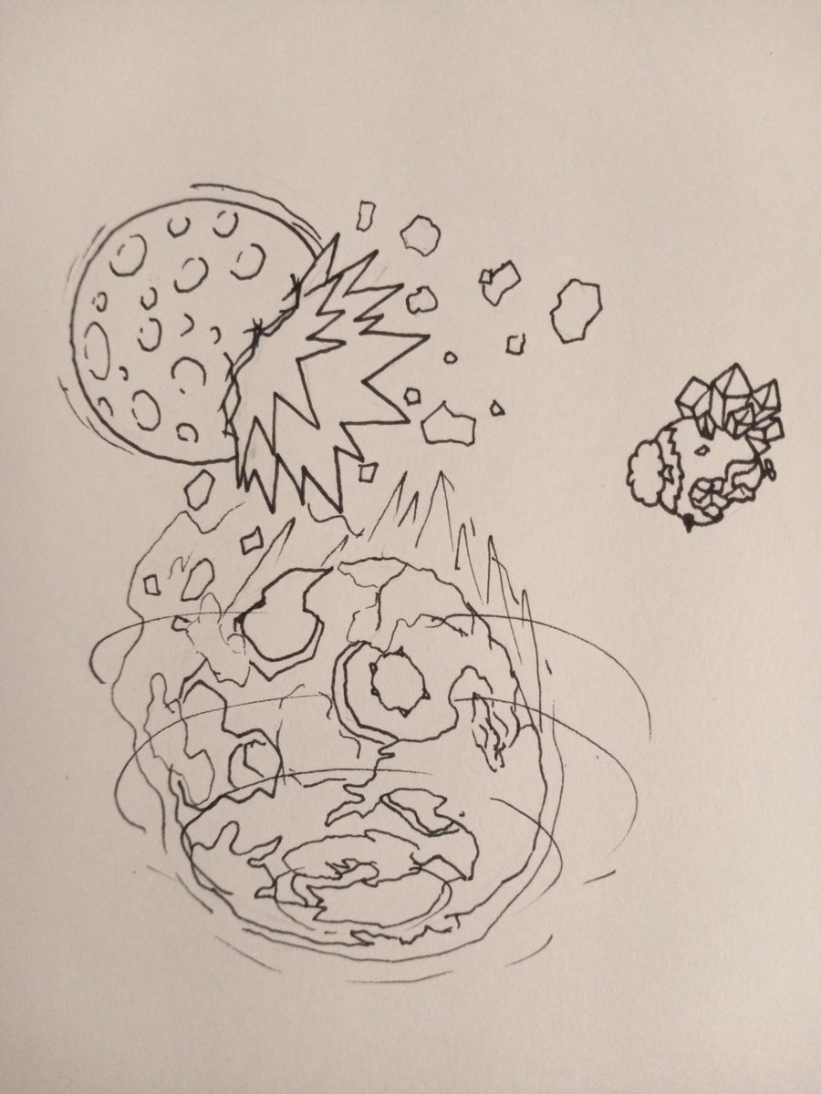 #Inktober2021 #inktober entries for the first four days of week three, "HELMET" "COMPASS" "COLLIDE" and "MOON". #traditionalart