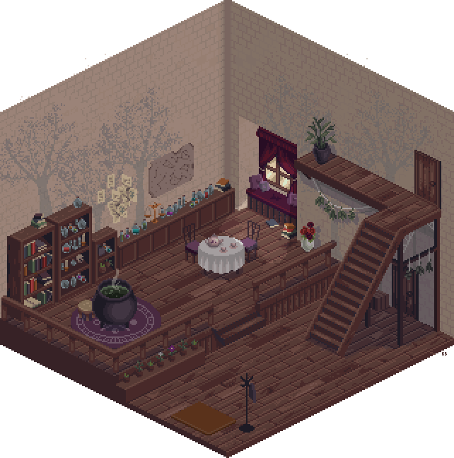 #isometric #pixelart Witch's room. This was a difficult piece for me and I'd love some feedback/suggestions!