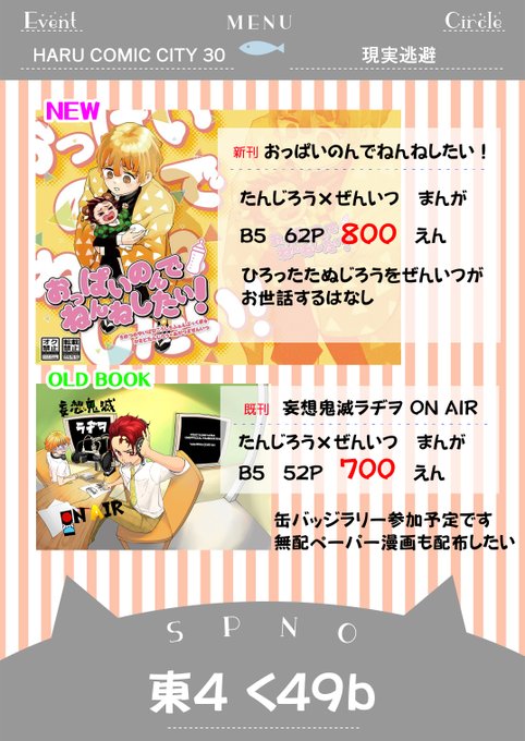 3/21炭善オンリーのお品書きです。 東4 49b 当日お会いできることを楽しみにしています(*^^*) 必要ないと思いますがお取り置き必要な方はDMください。 缶バッジラリーも参加予定です。 ペーパー漫画も配布したいな。 サンプル 新刊ec.toranoana.jp/joshi_r/ec/ite… 既刊ec.toranoana.jp/joshi_r/ec/ite…