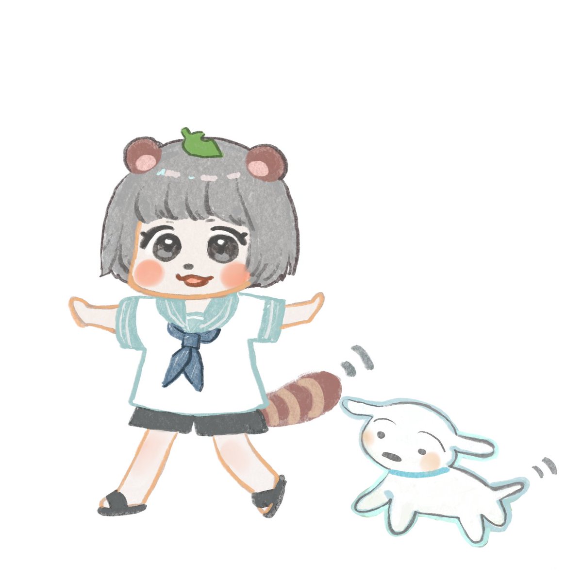 #ぽこあーと グレーのマスク付けたら全部同色になっちゃうぽんぽこちゃん🍃