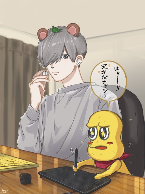 15 103 ご主人様の隣でお絵描きしてるピーナッツくん🥜(兄ぽこが描きたかっただけ) #オシャレになりたいピーナッツくん 21/09/13 19:41