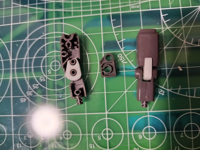 本日の模活 エコプラガンダムの肘パーツをプラ板の積層で新造。 てかこのプラモ、FGのリバイブとして販売いたらいいと思うんだけど、皆さんどう思います? #ガンプラ #ガンプラ好きとつながりたい #ガンプラの画像貼るとRTされると聞いて