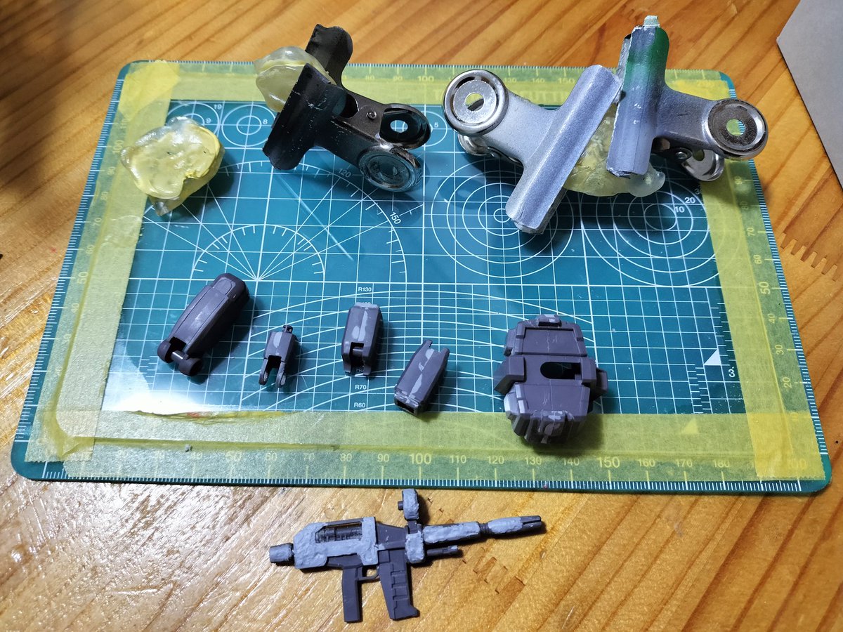 本日の模活 アマプラでゴジラとハルク観ながら 肉抜き埋め ヤスリがけ 息子のガンプラの良さげなハンドパーツを借りて複製 ペンサンダーが無かったら即死だったw #ガンプラ #ガンプラの画像貼るとRTされると聞いて
