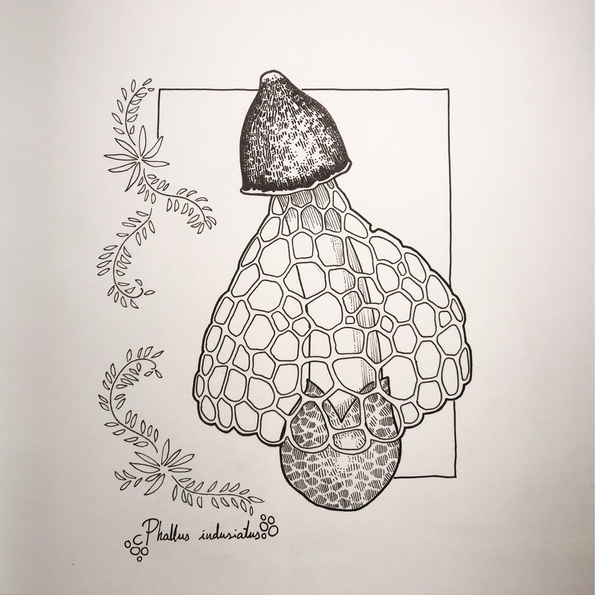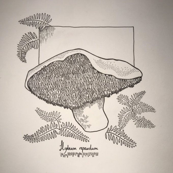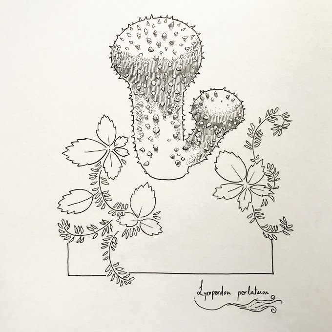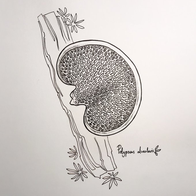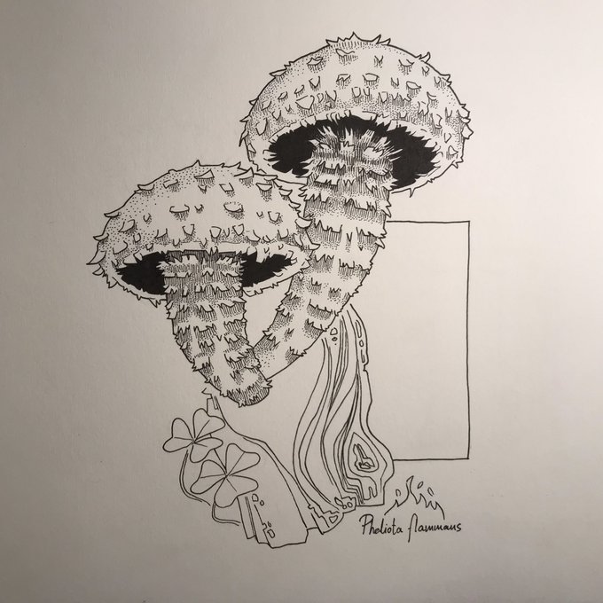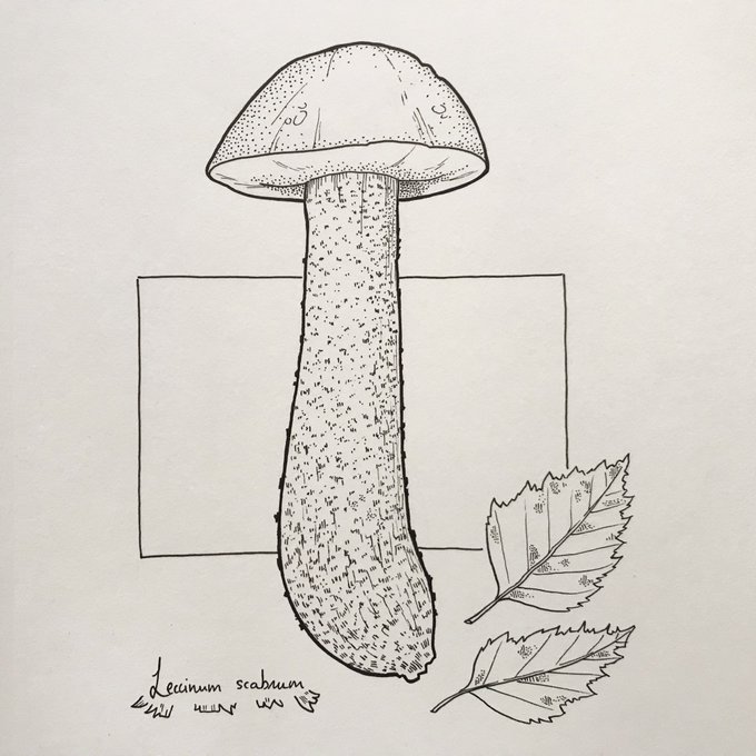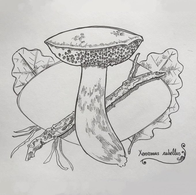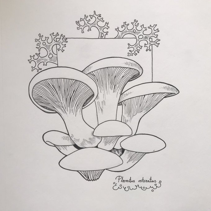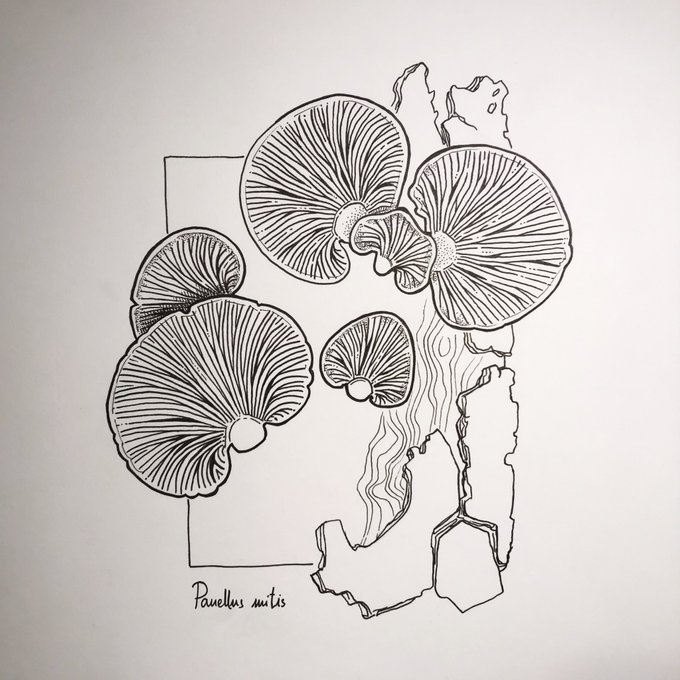 Second #mushroom for this #inktober. Also, yesterday was #WorldFungusDay, so here's my homage: Oudemansiella mucida, also called Porcelain fungus 🫖🍄 #inktober2021 #fungi