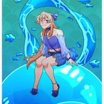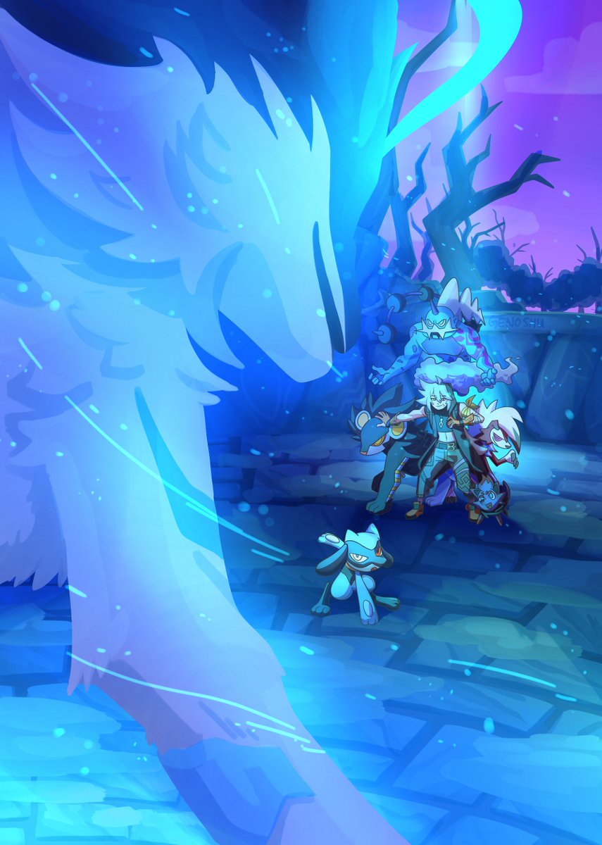 [Zine] Artwork I did for @Pokemongenshin (left) Trainer Razor and (right) Hutao and Zhongli Page starters for one of the writers! I am no longer Zhongli-less after this! #genshinfanart