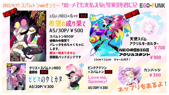 【イベント参加】 2022/9/17 スパム㌧webオンリー #クロ愛2 お品書き メカニカル氏【@batekka 】との合同サークルで参加します!!