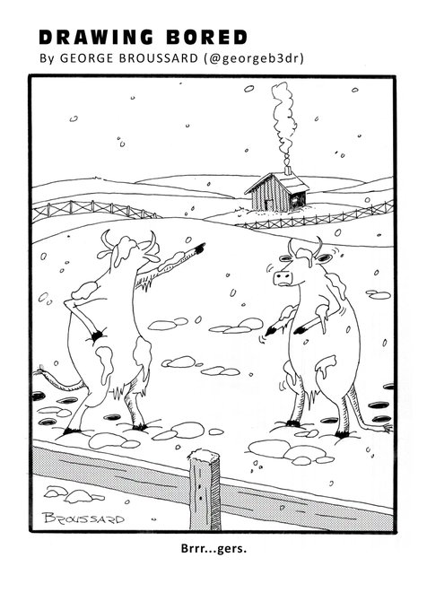 Attempting a small single panel comic for an October drawing challenge. Inktober Day 04 - "Freeze" "Brrr...gers." Please retweet if you enjoy. It's appreciated and motivates. #Inktober #inktober2019
