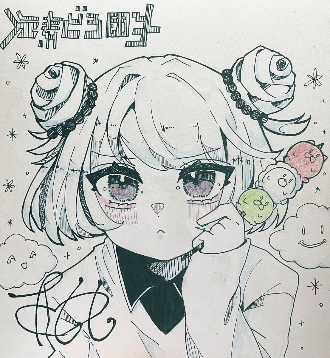 中学生の時描いたペン画 とってもカワイイので見て🖤 ちなみにこの時漫画投稿してました🖋 #ペン画 #アナログイラスト